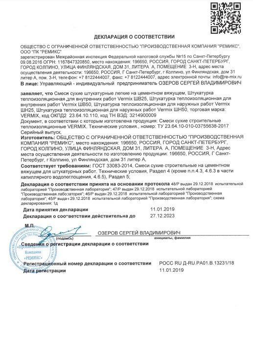 Vermix ШН50 имеет нейтральный цвет, что позволяет использовать его как основу для последующей отделки, нанесения краски или декоративной штукатурки. Этот продукт отличается долговечностью и надежностью, обеспечивая долговечное и качественное покрытие.